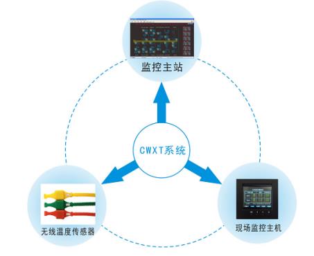 整個測溫系統(tǒng)由無線溫度傳感器、現(xiàn)場監(jiān)控主機、后臺監(jiān)控系統(tǒng)三大部分組成。