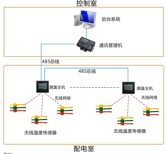 3、測溫處理主機通過RS485總線將測溫數(shù)據(jù)傳到監(jiān)控后臺,最遠通訊距離可達1200米。