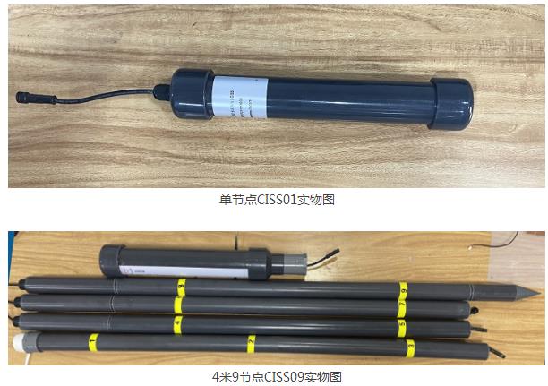 完整一體化多節(jié)點土壤含水率-傾角計拼裝完成后,總長度約為5.4m。其中地上部分0.3m(即0.36m無線采集頭地表露出部分),地下部分5.10m。